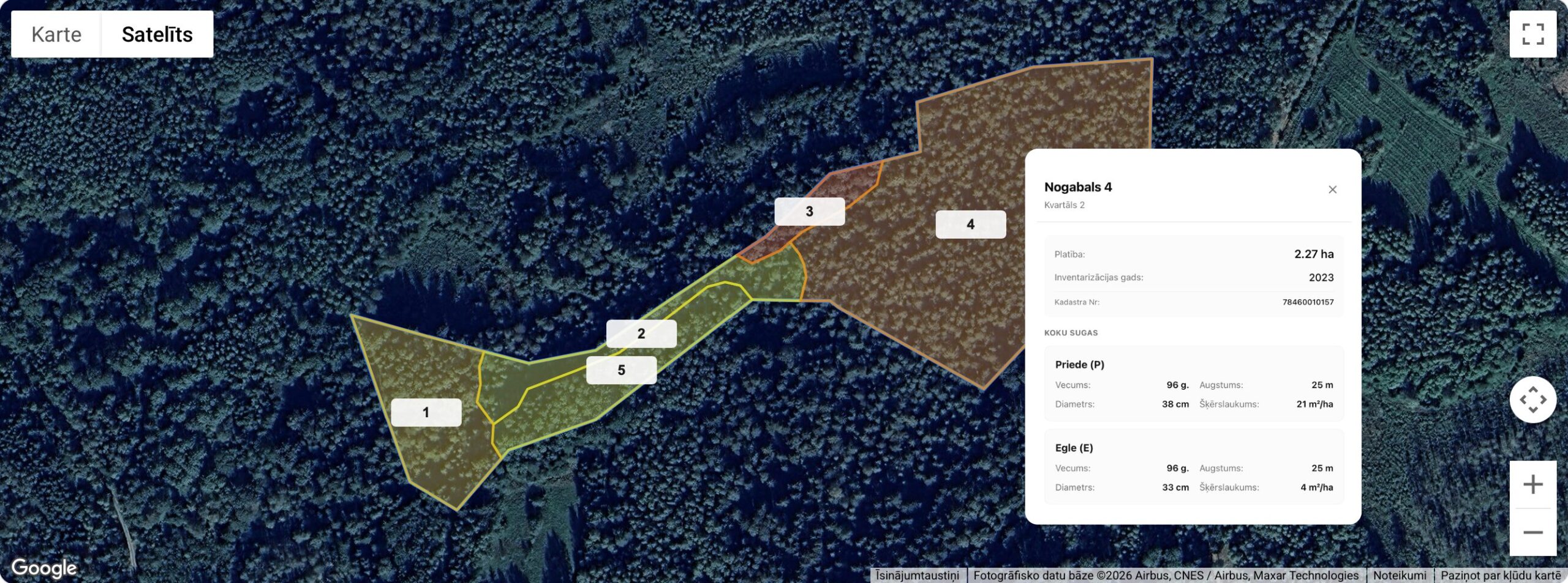 | 4 | 2.27 ha | 96 g | Priede (P) | GALVENĀ CIRTE KOPŠANAS CIRTE | ⏳ Nākotnē |